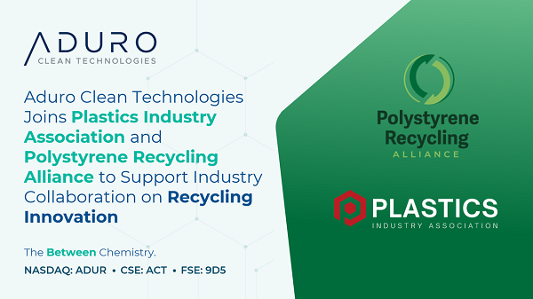 Aduro Clean Technologies Inc a clean technology company using the power of chemistry to transform lower-value feedstocks, like waste plastics, heavy bitumen, and renewable oils, into resources for the 21st century, today announced its membership in both the Plastics Industry Association (PLASTICS) and the Polystyrene Recycling Alliance (PSRA), a collaborative initiative of PLASTICS focused on advancing polystyrene recycling solutions.